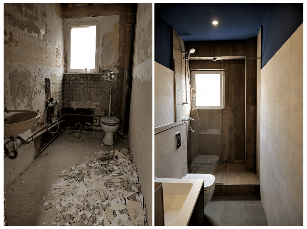 Bei der Sanierung der Dachgeschosswohnung wurde ein besonderer Wert auf die Vollständige Sanierung des Badezimmers gelegt.