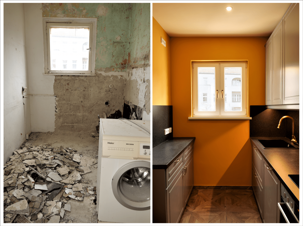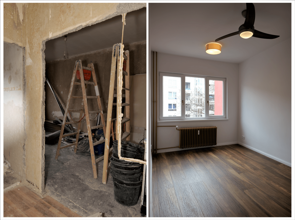 Die 3 Zimmer Wohnung im Soldiner Kiez wurde einmal komplett kernsaniert. Die Elektronik wurde einmal komplett erneuert. Jedes Zimmer wurde mit eigenem Kabel & Netzwerkanschluss ausgestattet. Der Balkon ist nach der Sanierung von 2 Zimmern aus erreichbar durch die zusätzliche Installation einer Balkontür. Der Flur wurde um ein Gäste WC mit Rundecke erweitert. Das Badezimmer wurde mit hochwertigen Fliesen versehen, sowie mit einer Walk In Dusche mit Glasscheibe. Fußbodenheizungen wurden sowohl in der neu gestalteten Küche , als auch im Badezimmer eingebaut. Insgesamt hat die Wohnung einen sehr einladenden und lebendigen Charakter erhalten, welcher durch die Farbwahl in den Zimmern hervorgehoben wurde